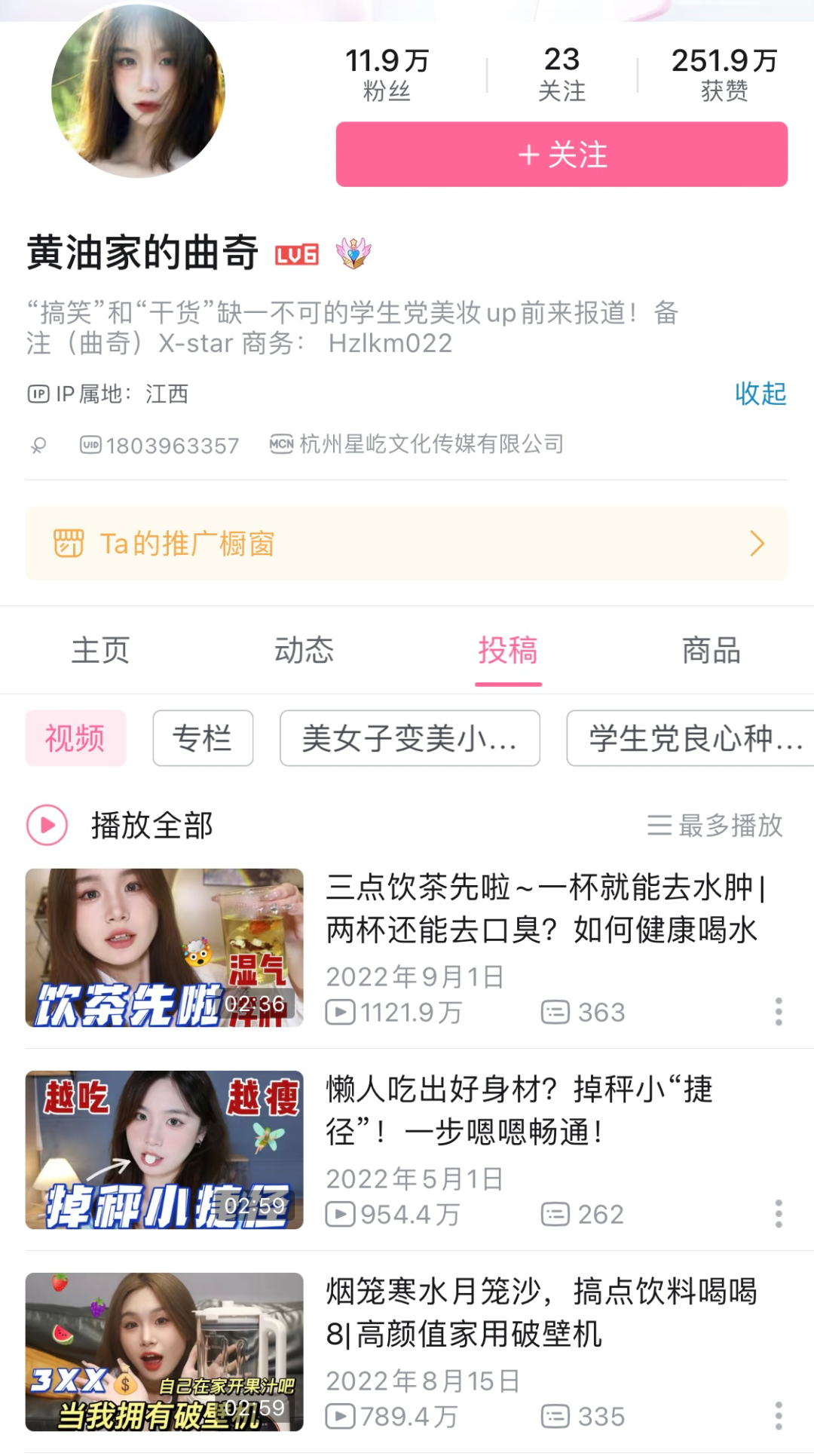 無堂網(wǎng)絡(luò)旗下種草UP主@黃油家的曲奇