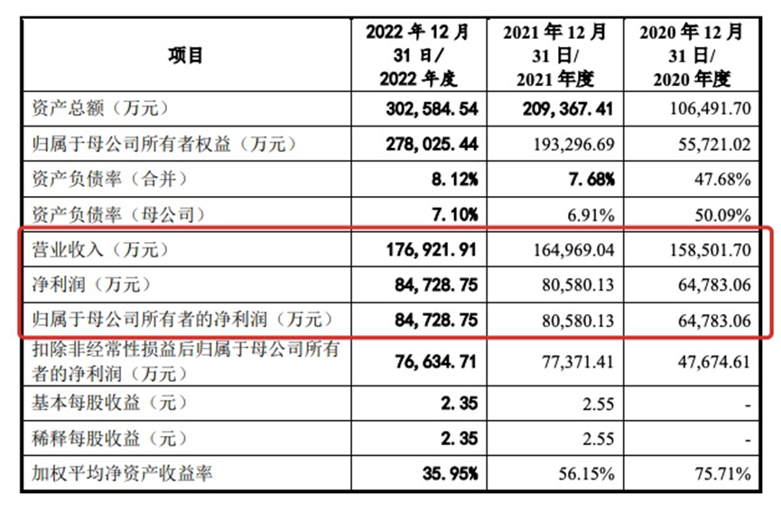 招股書顯示,2020年至2022年,敷爾佳的營收分別為15.85億元、16.50億元和17.69億元;凈利潤則分別為6.48億元、8.06億元和8.47億元。也就是說,過去三年,敷爾佳凈賺有20多個億。