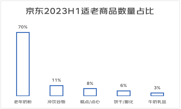 在對60歲以上人群的調(diào)研中,面對“2023年上半年,您的生活出現(xiàn)了哪些變化”的問題,75%的人認為更關(guān)注健康了,42%的人“更喜歡大自然”,不過也有39%的人刷手機的時間更長了(多選題響應率)。從銷售情況來看,營養(yǎng)保健品也是適老商品最豐富的品類,其中,鈣、蛋白粉、氨糖/軟骨素的商品數(shù)占比最高。