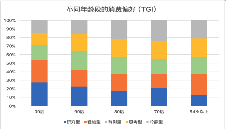 而以70后、80后為代表的中堅人群則更偏向于冷靜和思考,同時他們的“有側(cè)重消費”比例最低,消費彈性較小,需要消費的品類和產(chǎn)品較多。因此面向這個人群的產(chǎn)品,則應當更加注重實用性、功能性和針對性。