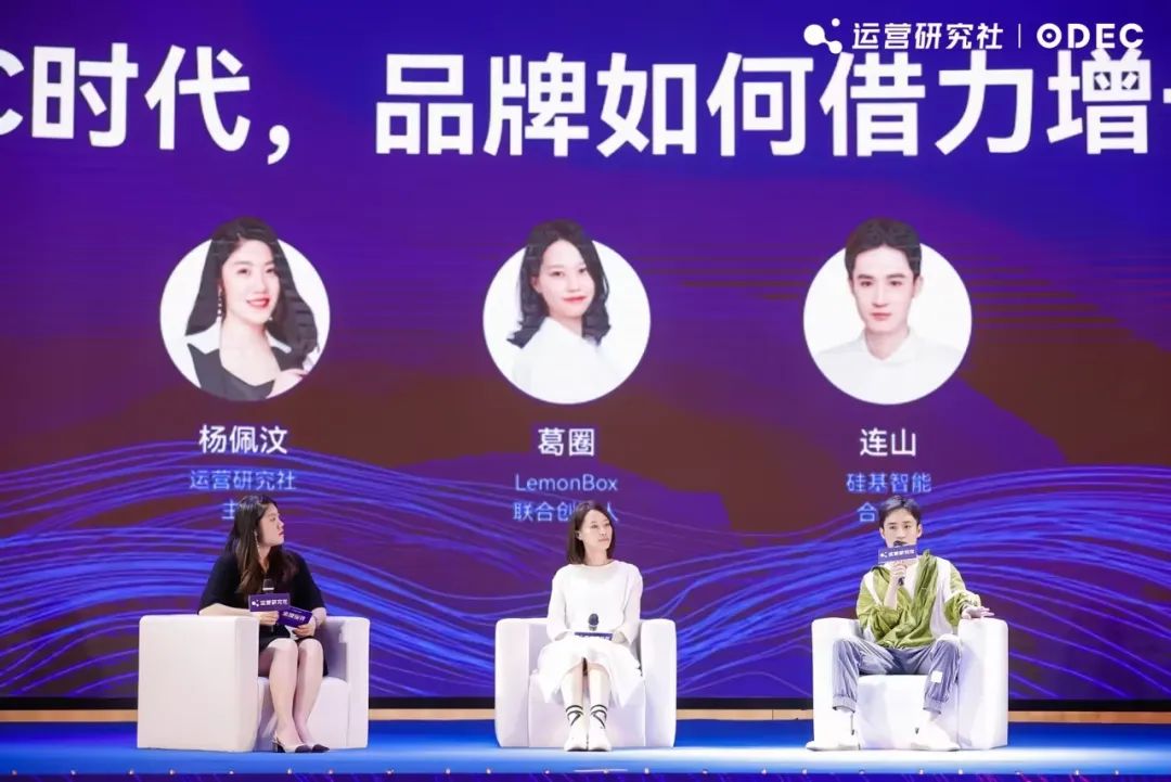 長久以來運營社也在持續(xù)關(guān)注這個話題,活動現(xiàn)場運營社主編楊佩汶主持了《AIGC 時代,品牌如何借力增長》的圓桌論壇。LemonBox 聯(lián)合創(chuàng)始人葛圈和硅基智能合伙人連山作為嘉賓進行了精彩的分享。
