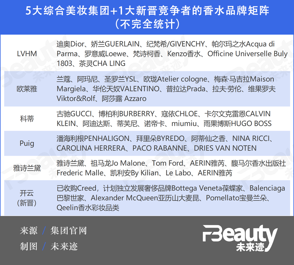 值得注意的是,除了這五大集團(tuán)之外,全球三大奢侈品集團(tuán)之一的開云也在香水市場野心勃勃,繼重金拿下Creed之后,還將為集團(tuán)旗下更多奢侈品品牌開辟香水和彩妝線,可以預(yù)見也是未來中國香水市場中一位不可小覷的競爭者。