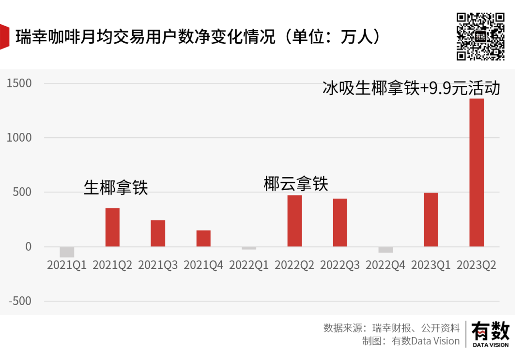 其次是爆款推動(dòng),本季度瑞幸推出冰吸生椰拿鐵,首周突破666萬杯,相比之前與椰樹聯(lián)名推出的椰云拿鐵單周495萬杯,銷量再上一個(gè)臺(tái)階。