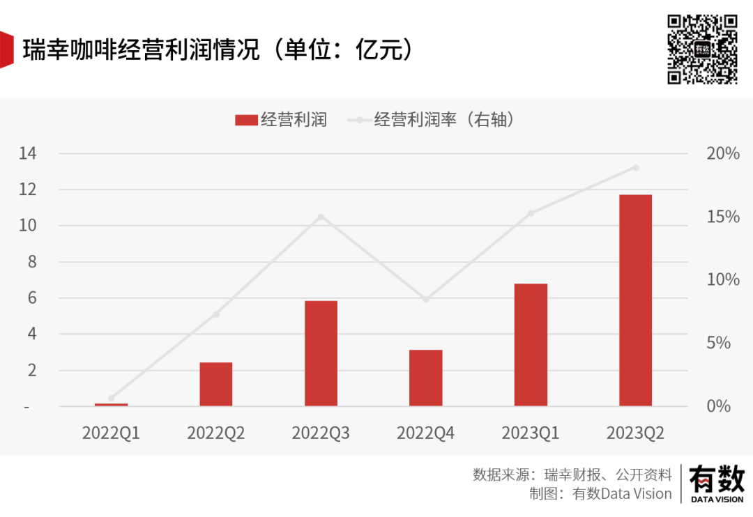 與此同時(shí),盡管本季度瑞幸推出9.9元的活動(dòng),不但沒有對經(jīng)營利潤造成影響,反而使得盈利能力進(jìn)一步提高,二季度實(shí)現(xiàn)經(jīng)營利潤為11.72億元,經(jīng)營利潤率為18.9%,為歷史最高。