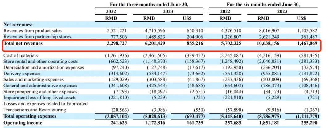 瑞幸業(yè)績(jī)情況,圖源瑞幸2023年第二季度財(cái)報(bào)