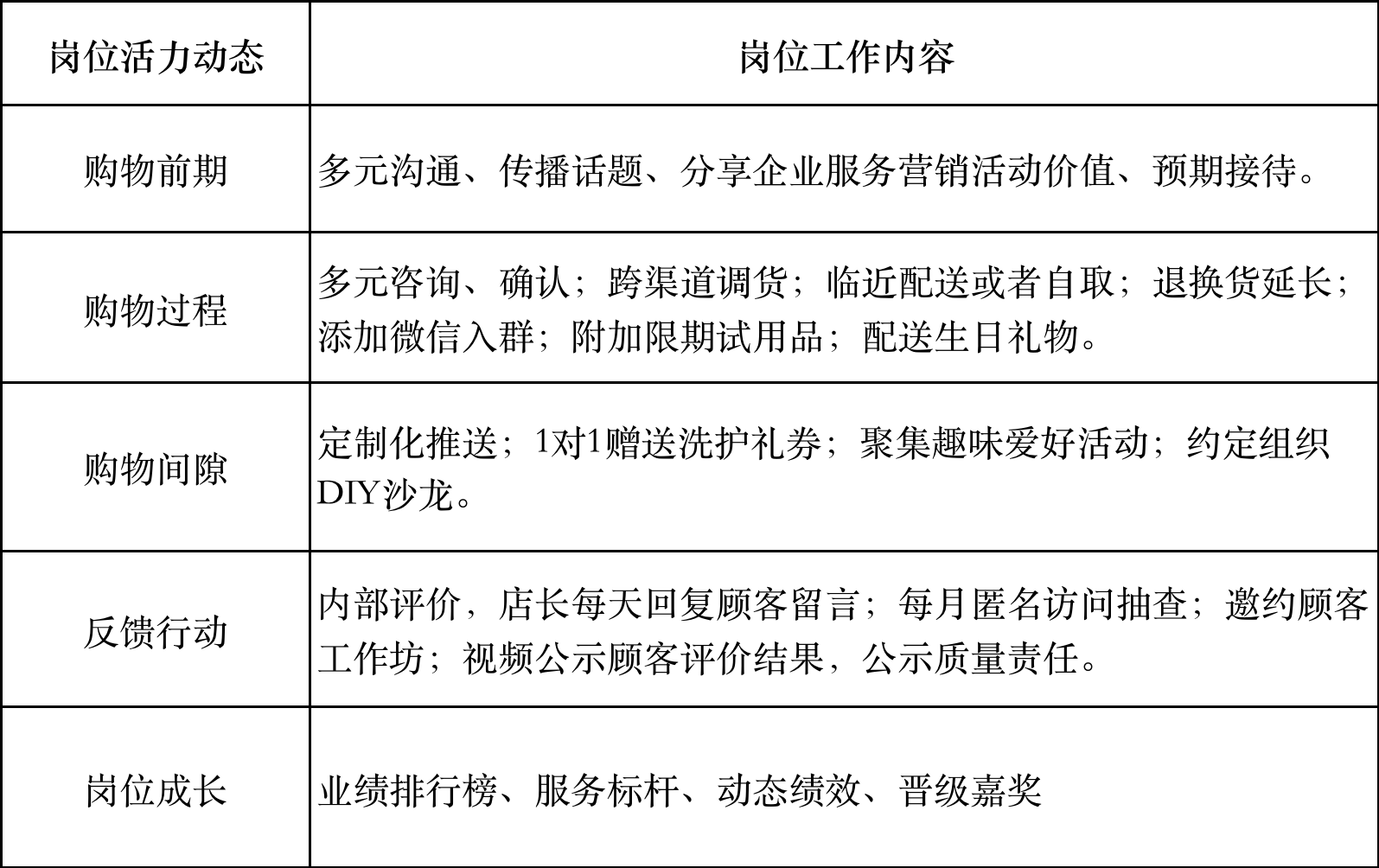 結(jié)合專業(yè)崗位,分類分層激勵(lì),在服務(wù)營(yíng)銷領(lǐng)域?qū)?dǎo)購(gòu)員看作是核心生產(chǎn)力,采取系統(tǒng)化培養(yǎng)支持措施,一方面促進(jìn)員工成長(zhǎng),另一方面帶動(dòng)內(nèi)部合作效率和服務(wù)營(yíng)銷業(yè)績(jī)。主要由三大模塊組成,第一個(gè)是分級(jí)訓(xùn)練督導(dǎo),包括新員工入門(mén)、熟練崗位任務(wù)和執(zhí)行話術(shù)、有能力時(shí)鼓勵(lì)帶領(lǐng)更年輕的隊(duì)伍;第二個(gè)是按照專業(yè)特點(diǎn),分級(jí)授權(quán),特別是店鋪各級(jí)經(jīng)理,在應(yīng)對(duì)處理現(xiàn)場(chǎng)問(wèn)題,協(xié)調(diào)組織團(tuán)隊(duì)關(guān)系和員工績(jī)效等問(wèn)題時(shí),充分尊重現(xiàn)場(chǎng)績(jī)效和安全治理指標(biāo),主動(dòng)把握?qǐng)?zhí)行。第三個(gè)是采取系列激勵(lì)方法,在項(xiàng)目進(jìn)度條上橫向?qū)Ρ龋ㄟ^(guò)反饋記錄、巡查發(fā)現(xiàn)、復(fù)盤(pán)推演,找出亮點(diǎn)、推進(jìn)工作。