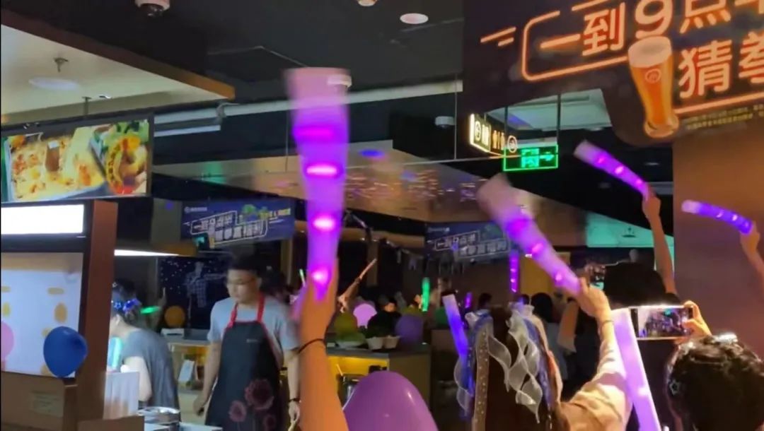 此外,海底撈還忙著把自己打造成“演唱會分會場”,門店里準(zhǔn)備了熒光棒、話筒和音箱,并設(shè)置了粉絲限定狂歡區(qū),歌迷可以現(xiàn)場點歌,繼續(xù)嗨。他們甚至還提前做好了功課,按照明星應(yīng)援色,布置了氣球、橫幅等。
