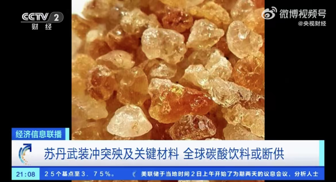 阿拉伯膠是生產(chǎn)可口可樂等碳酸飲料的關(guān)鍵原料之一,能夠讓飲料中的二氧化碳保持穩(wěn)定。非洲國家蘇丹生產(chǎn)的阿拉伯膠出口量達到全球七成,而其爆發(fā)武裝沖突,讓全球的碳酸飲料制造商、品牌都感到焦慮。