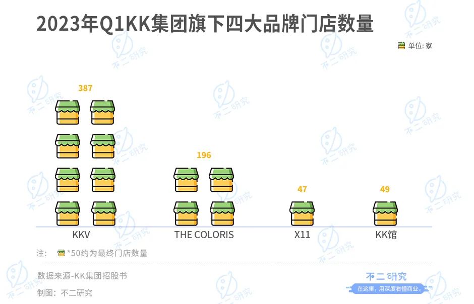 實(shí)際上,色彩鮮艷的門(mén)店不僅是KK的亮眼招牌,也是KK集團(tuán)是營(yíng)收根基。開(kāi)店似乎已經(jīng)成為KK上市故事的邏輯起點(diǎn):通過(guò)門(mén)店的擴(kuò)張實(shí)現(xiàn)降本增效。