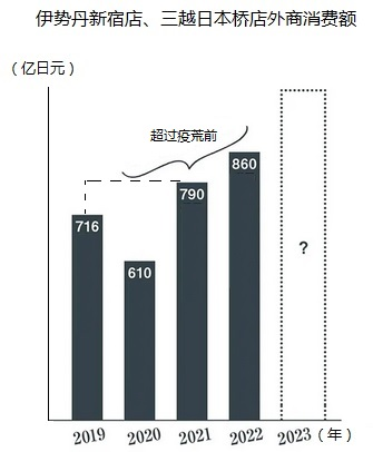 其實(shí)不盡然,作為意料之外的驚喜,有一些明顯的外部因素。同一新宿商圈的小田急百貨店2022年10月關(guān)閉本館。2023年1月,東急百貨店澀谷本店也全部關(guān)閉,由于商圈店址臨近的原因,伊勢(shì)丹新宿店接受了這兩個(gè)店甩過來的高端外商客戶的消費(fèi)盤子,三越伊勢(shì)丹的經(jīng)理也承認(rèn)這個(gè)事實(shí),這是一塊預(yù)算外的肥肉,與本身經(jīng)營能力和主動(dòng)作為沒有直接關(guān)系。