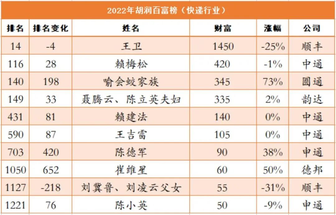 隨后“快遞之王”迅速崛起,2017年,順豐控股正式借殼上市,巔峰市值超過5000億。持有順豐54.95%股權(quán)的王衛(wèi),更以1900億元身家問鼎2022年中國快遞行業(yè)首富。