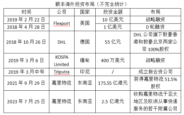 就在上市消息的一周前,順豐又收購了幾家海外快遞公司。