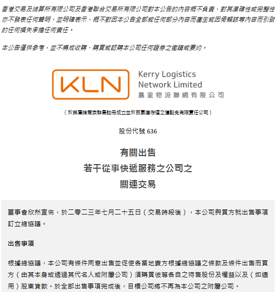根據(jù)嘉里物流7月25日發(fā)布的公告顯示,順豐正在以2.5億港元收購嘉里物流旗下亞太區(qū)和歐洲從事快遞服務的10家附屬公司。
