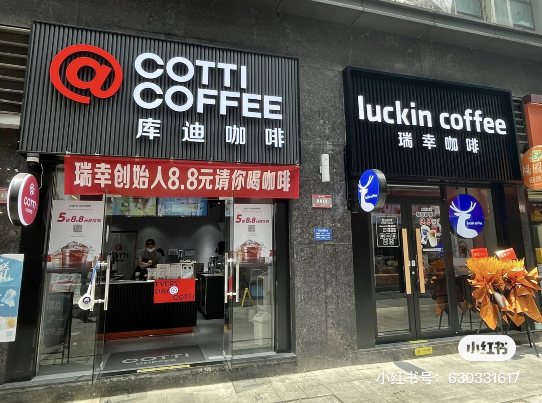 近期網(wǎng)絡(luò)上流傳的一張圖,某地的庫迪與瑞幸咖啡門店,圖片來自小紅書用戶momo