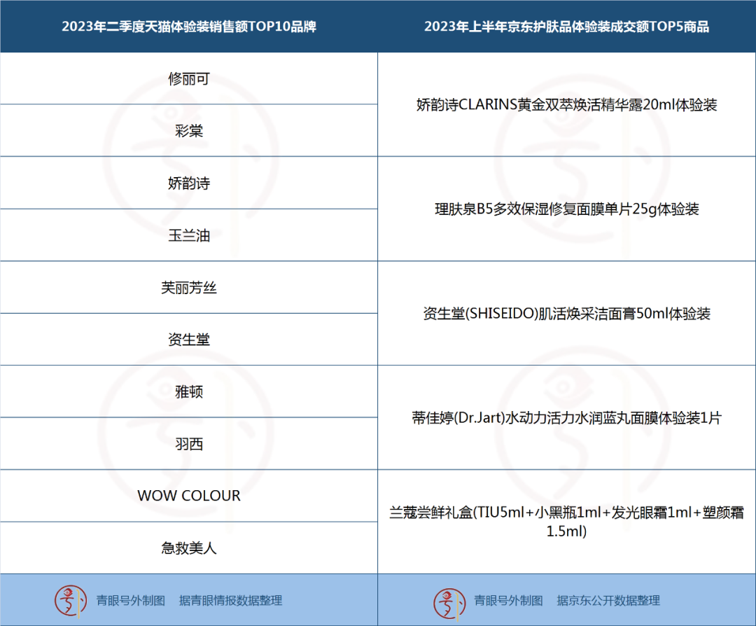 青眼情報數(shù)據(jù)顯示,2023年二季度,天貓渠道化妝品體驗裝的銷量同比增長115%,遠超其他品類。來自京東消費及產(chǎn)業(yè)發(fā)展研究院的數(shù)據(jù)也顯示,2023年上半年,京東平臺上護膚美妝品類體驗裝的銷量達到2019年同期的近5倍,一線城市體驗裝銷量超過去年同期的4.5倍。