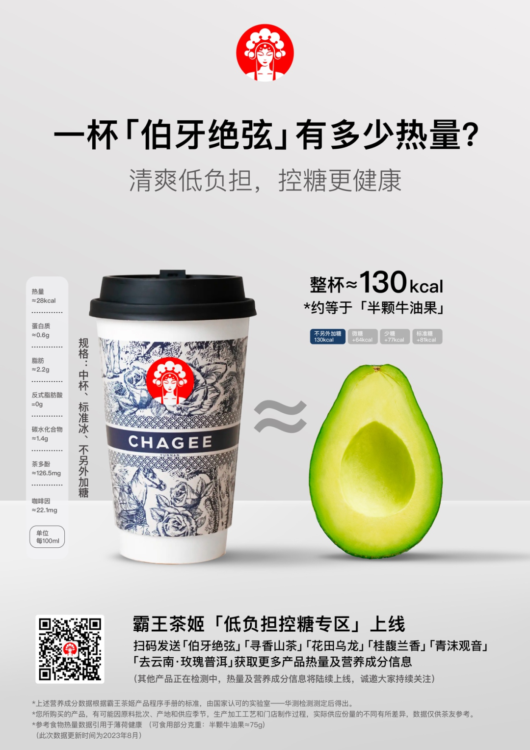 從8月12日開始,消費(fèi)者購買6款產(chǎn)品后,在霸王茶姬公眾號(hào)回復(fù)產(chǎn)品名稱就能自動(dòng)收到詳細(xì)的“產(chǎn)品身份證”說明書。比如輸入“伯牙絕弦”,即可獲得這款產(chǎn)品不同糖分對(duì)應(yīng)的熱量和營(yíng)養(yǎng)成分、風(fēng)味表等數(shù)據(jù)。