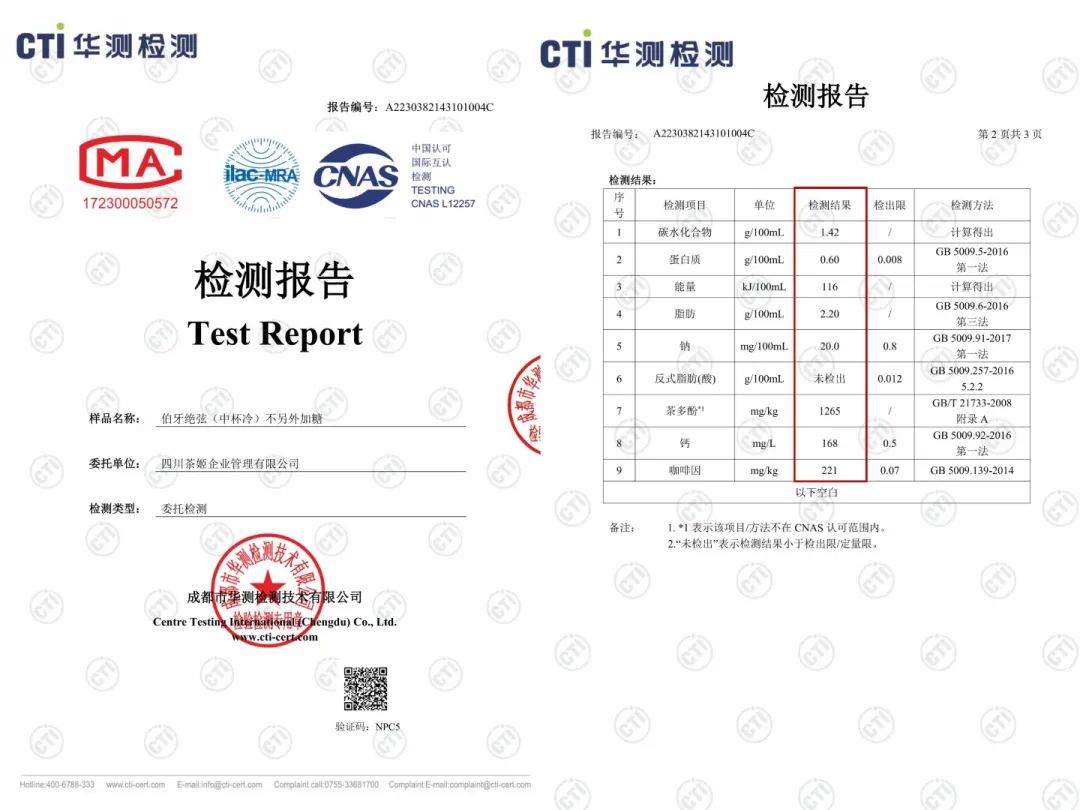霸王茶姬公布了首批6款產(chǎn)品的熱量,在身份證里詳細(xì)標(biāo)注“熱量卡路里、蛋白質(zhì)、茶多酚、脂肪”等數(shù)值指標(biāo)。相關(guān)數(shù)值指標(biāo)經(jīng)過獨(dú)立的第三方檢測(cè)機(jī)構(gòu)“CTI華測(cè)檢測(cè)”檢驗(yàn)確認(rèn)。