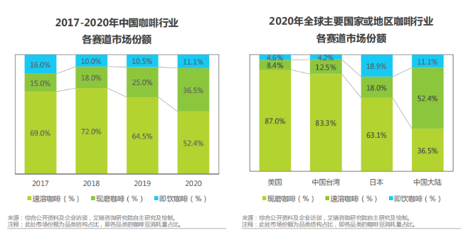 艾瑞咨詢數(shù)據(jù)顯示,2020年國(guó)內(nèi)速溶咖啡市場(chǎng)份額為52.4%。中研普華研究院發(fā)布的《2023—2028年中國(guó)速溶咖啡行業(yè)供需分析及發(fā)展前景研究報(bào)告》數(shù)據(jù)則顯示,目前中國(guó)咖啡消費(fèi)市場(chǎng)規(guī)模約1000億元左右,其中速溶咖啡占72%,即市場(chǎng)規(guī)模約720億元。