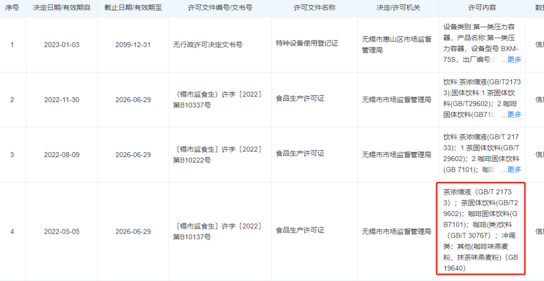 公開(kāi)信息顯示,三頓半的產(chǎn)品主要是委托由原力計(jì)劃飲品(江蘇)有限公司生產(chǎn)。據(jù)天眼查顯示,2021年12月三頓半曾向該企業(yè)注資220萬(wàn)元,并獲得該企業(yè)25%的股份,成為該企業(yè)第二大股東。而在去年5月份,該公司獲得了由無(wú)錫市市場(chǎng)監(jiān)督管理局批準(zhǔn)的咖啡固體飲料、茶濃縮液等相關(guān)產(chǎn)品的生產(chǎn)資質(zhì)。