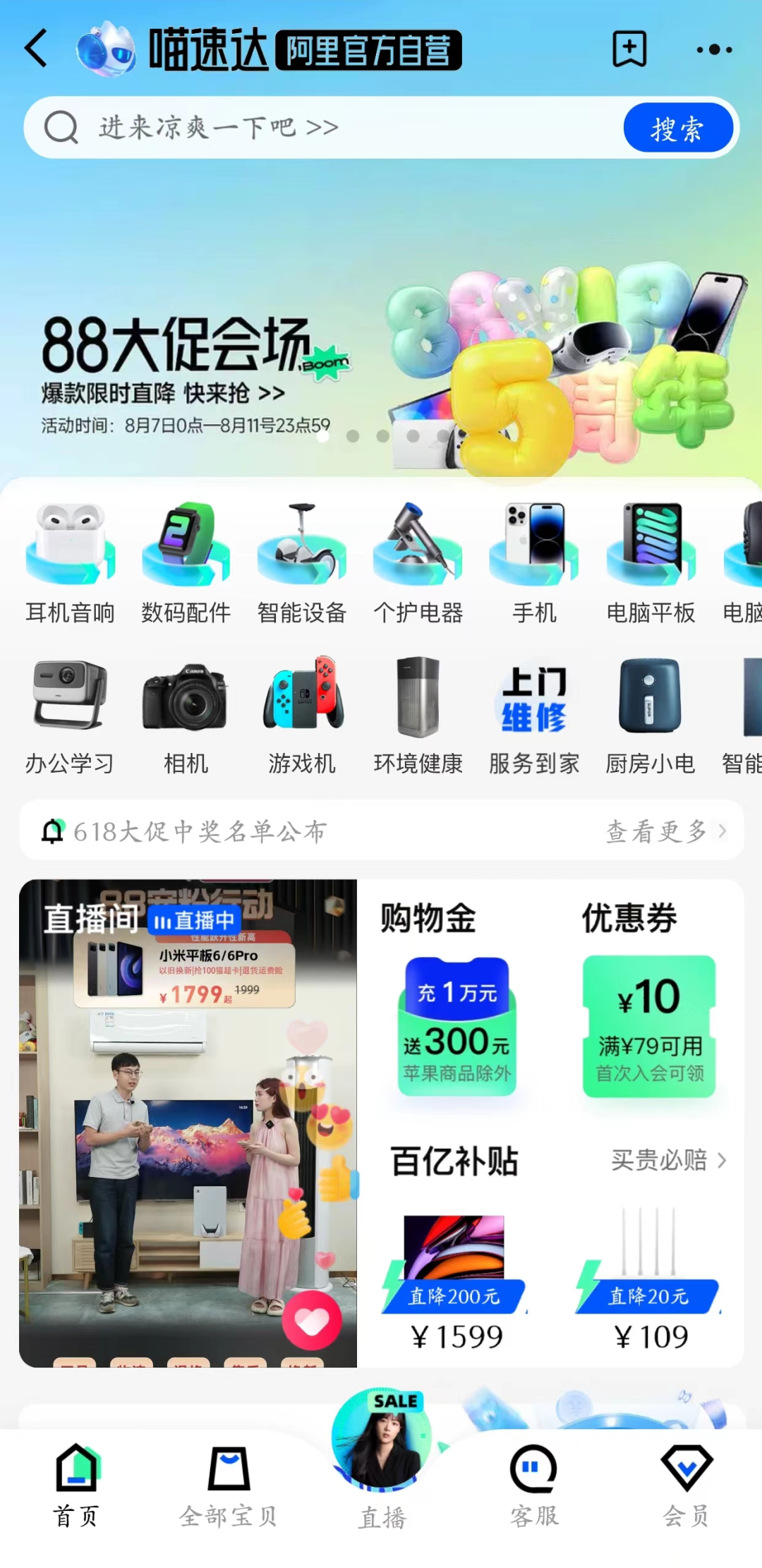 喵速達(dá)電器天貓旗艦店,圖/天貓APP