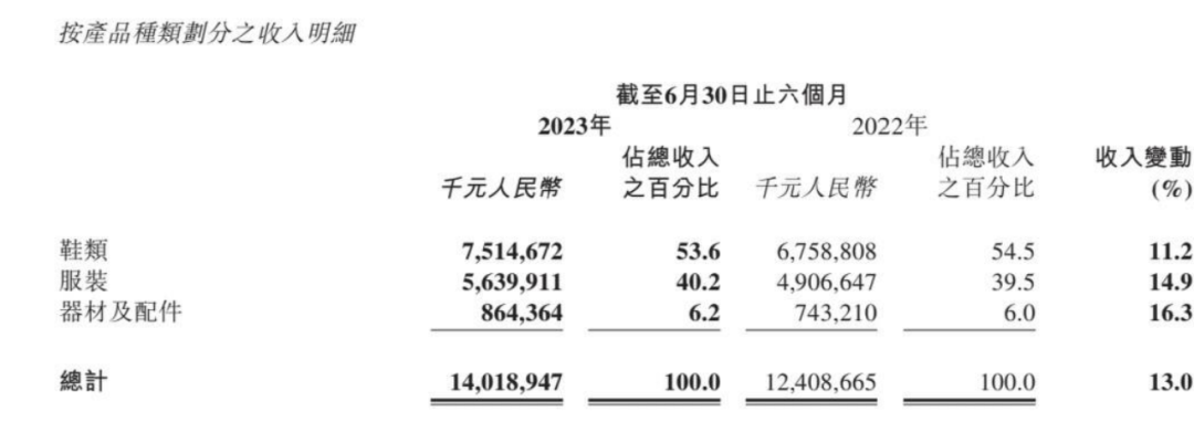 截至2023年6月,李寧鞋類業(yè)務(wù)占比54%,超過服裝占比。在運(yùn)動品牌行業(yè)中,鞋類業(yè)務(wù)收入占比是衡量品牌專業(yè)運(yùn)動實(shí)力的重要指標(biāo)。