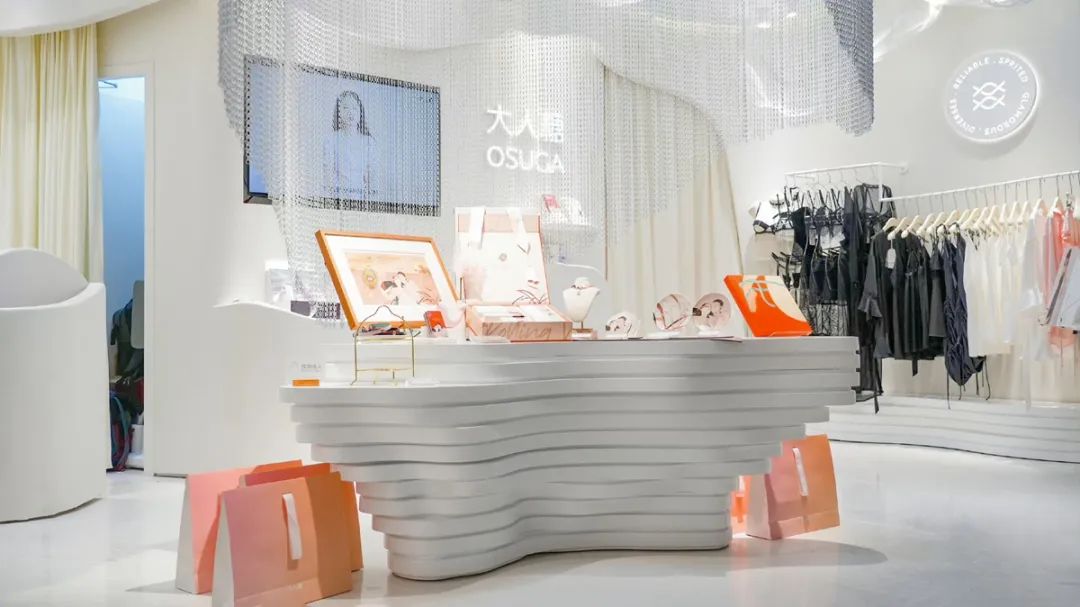 “門店是一個扁長型的空間,我們希望大家在店門口就能看到全部產(chǎn)品。同時,逛情趣用品店,消費者在保有好奇心的同時,隱私也是大家關(guān)注的點?紤]到這點,店內(nèi)每一塊區(qū)域的連接處都設計了軟、硬物隔斷,盡量讓消費者能夠舒服地了解產(chǎn)品,同時也能夠保留個人的空間!贝笕颂瞧放曝撠熑烁喔嘞蛄闶劬榻B了店內(nèi)動線的設計思路。