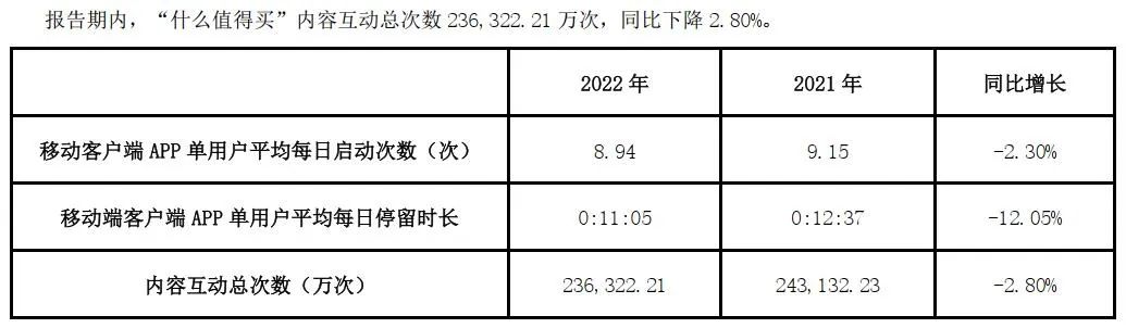 什么值得買,情況與之類似,用戶增速下降;三大核心運營指標(biāo),啟動次數(shù)、停留時長、互動次數(shù)均出現(xiàn)下降。