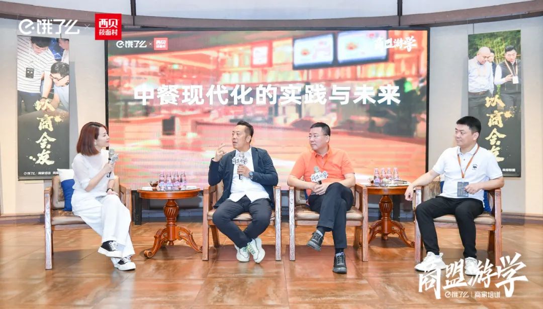 圖注:左二為西貝餐飲董事長賈國龍、右二為餓了么總裁方永新、右一為餓了么COO諶偉業(yè)