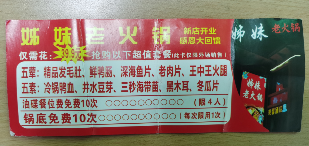 據(jù)“中國消費者報”報道,7月6日,有推銷人員向消費者袁先生推銷“姊妹老火鍋店感恩大回饋”消費券,表示只要花39.9元(限4個以上成年人使用),就能享受火鍋店“五葷”“五素”超值套餐,且消費券上注明“使用時間長期有效”。
