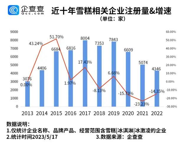 近十年雪糕相關(guān)企業(yè)注冊(cè)量和增速圖