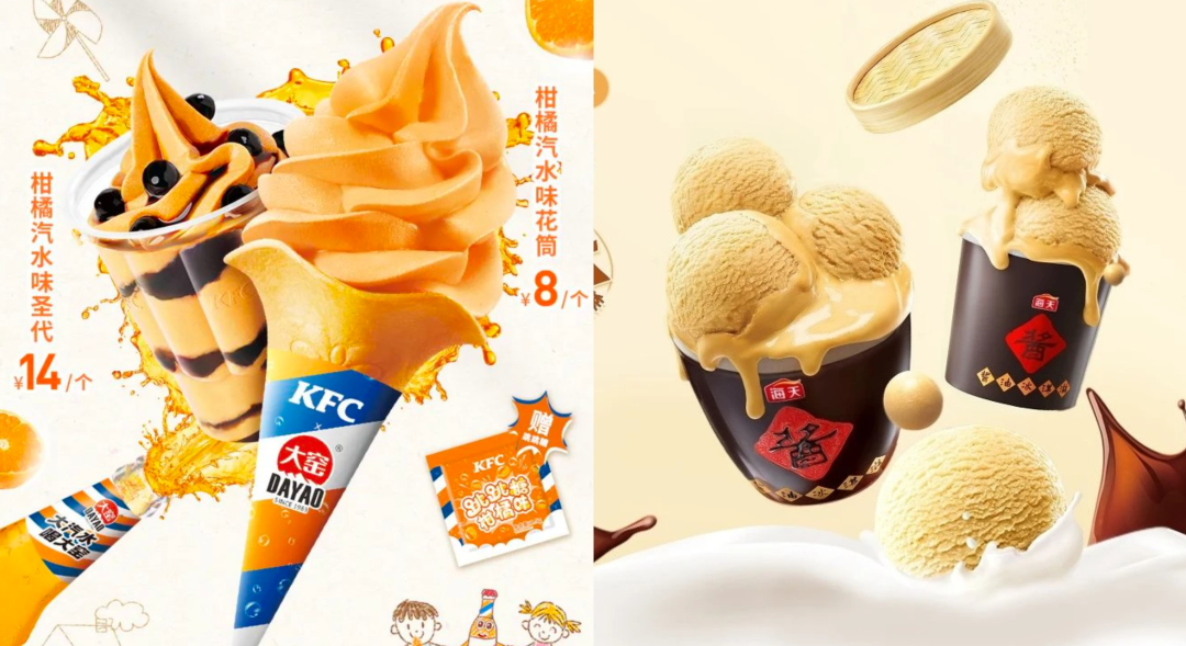 左:大窯汽水與肯德基聯(lián)名 右:海天醬油冰淇淋
