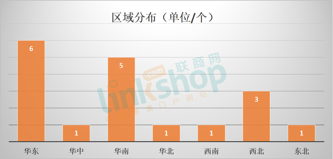 整體來看,7月新開的18個商業(yè)項(xiàng)目分布在7個大區(qū),華東持續(xù)領(lǐng)跑,有6個商業(yè)項(xiàng)目開業(yè);華南則以5個商業(yè)項(xiàng)目緊隨其后,這兩個經(jīng)濟(jì)強(qiáng)區(qū)依然是吸引開發(fā)商的重點(diǎn)區(qū)域;西北則以3個商業(yè)項(xiàng)目位列第三;此外,華中、華北、西南、東北等四個區(qū)均只有一個商業(yè)項(xiàng)目開業(yè)。