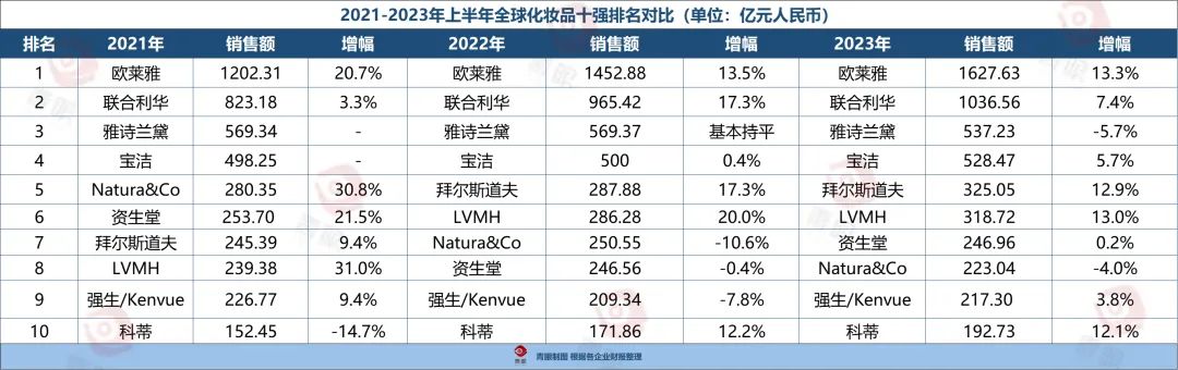 8月22日,科蒂集團發(fā)布了2023財年年報以及第四季度業(yè)績報告。至此,全球頭部化妝品企業(yè)今年上半年銷售數(shù)據(jù)已全部出爐,全球十大化妝品企業(yè)排名也隨之而來。