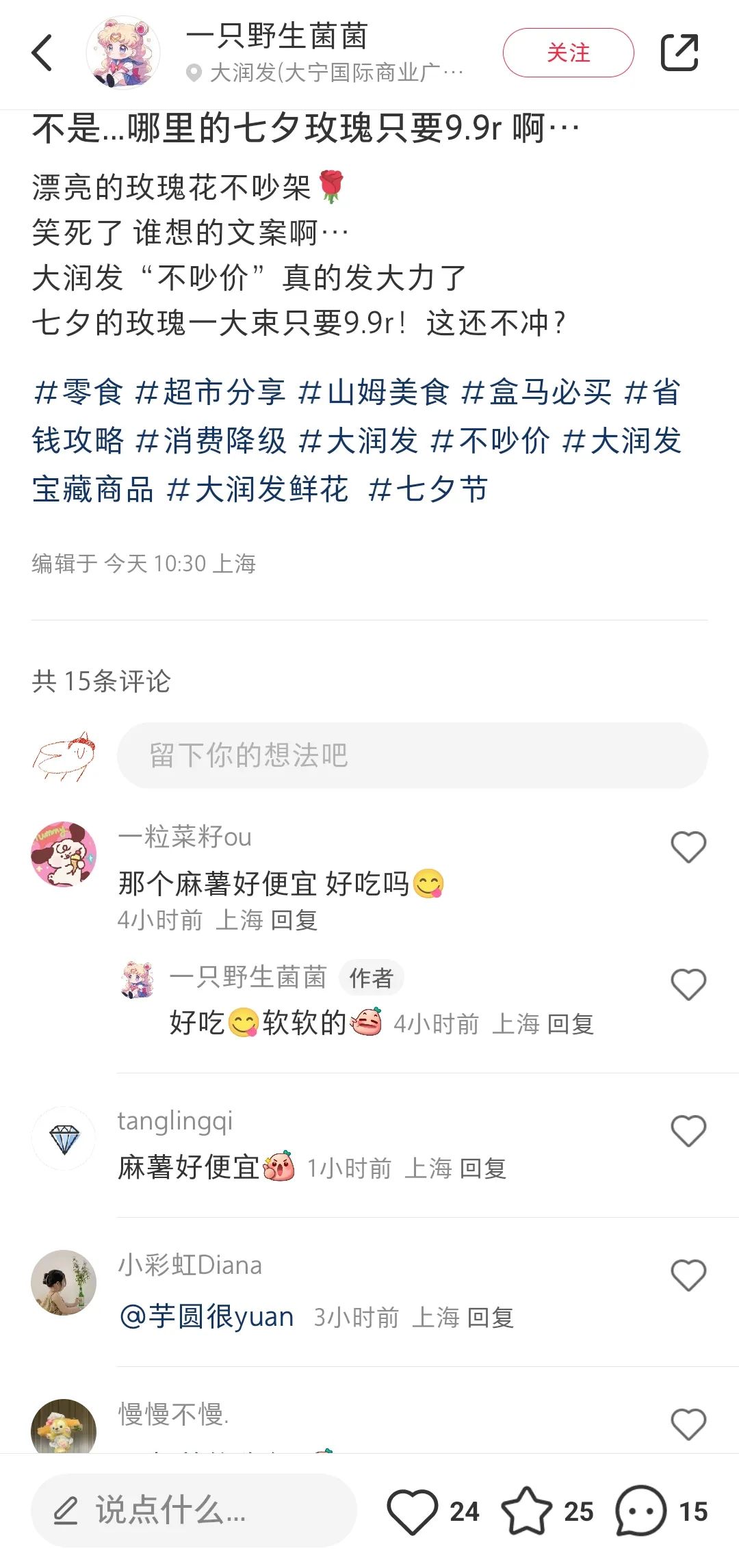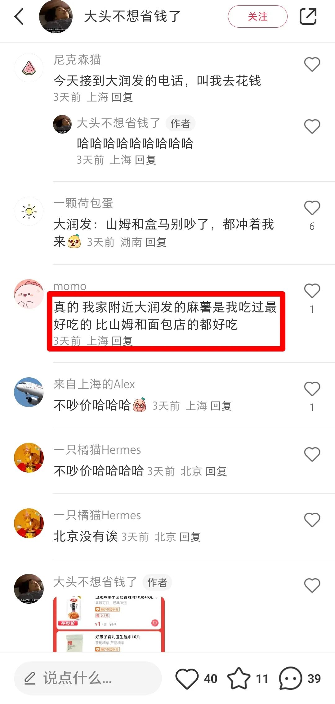 “蹭”上了商戰(zhàn)熱度的大潤(rùn)發(fā)成功收獲了諸多關(guān)注,在社交平臺(tái)上,有用戶自發(fā)地將“不吵價(jià)”的商品和其他商超進(jìn)行比價(jià)。在傳播的過(guò)程中,大潤(rùn)發(fā)也收獲了一眾好評(píng)。