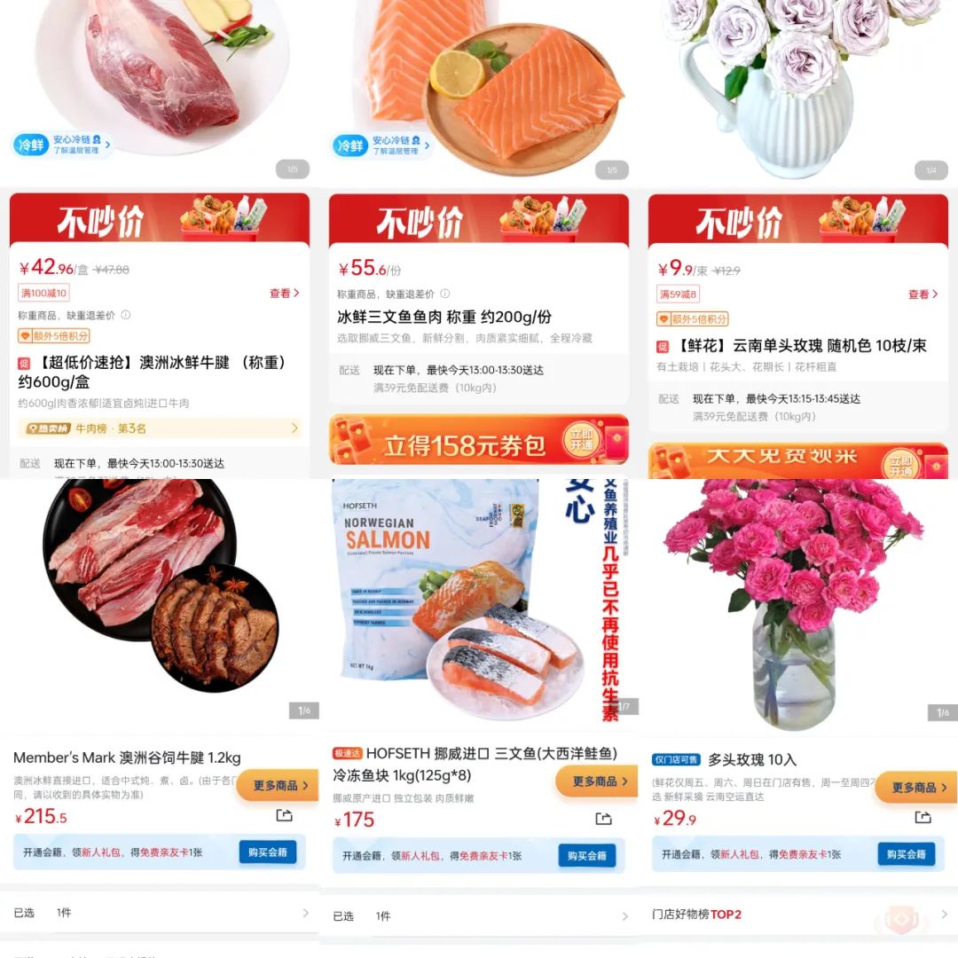 大潤(rùn)發(fā)澳洲冰鮮牛腱價(jià)格為35.8元/斤,挪威冰鮮三文魚200克真空貼體裝價(jià)格為55.6元,原包玫瑰花價(jià)格為9.9/10朵,也均比山姆的價(jià)格劃算。