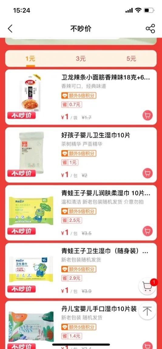 除了10款主打的爆款心智產(chǎn)品之外,大潤(rùn)發(fā)“不吵價(jià)”還上線了“氛圍組”商品,濕巾、雪碧、衛(wèi)龍等商品低至1元起。