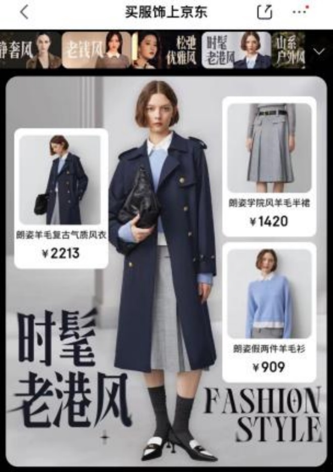 港風而作為復古回潮中大熱風格,眾多品牌推出時髦老港風服飾,8月以來京東用戶以學院風毛呢大衣作為關鍵詞搜索量增長115倍,復古風女靴搜索量增長27倍。