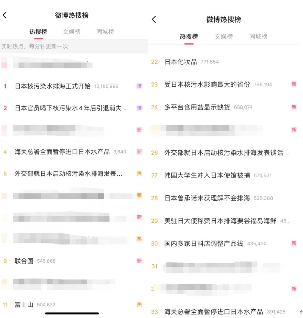 作為一衣帶水的鄰國(guó),我國(guó)一直對(duì)日本核污水排海一事保持關(guān)注,近日社交媒體上對(duì)核污水的討論熱度也持續(xù)攀升。昨日,“日本核污染水排海正式開(kāi)始”的微博話題一直高居熱搜榜第一,并成為微博爆詞,截至8月24日晚上10點(diǎn),該話題閱讀量已經(jīng)達(dá)到26.4億。關(guān)于日本核污水的多個(gè)新聞和話題也都沖上微博熱搜。