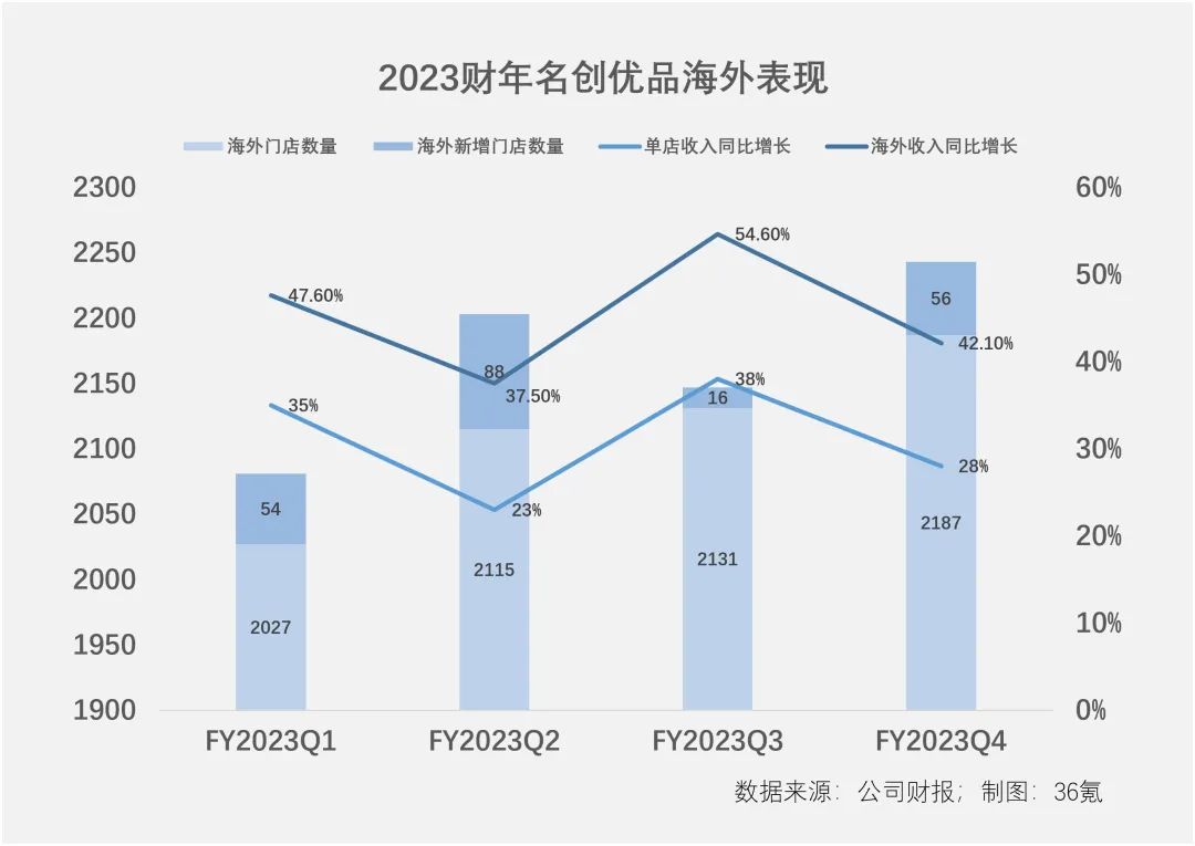 截止2023財(cái)年Q4,名創(chuàng)優(yōu)品的門店遍布105個(gè)國家和地區(qū),在紐約時(shí)代廣場、墨西哥城商業(yè)中心、平壤大街上都有門店,總計(jì)2187家海外門店(約占門店總數(shù)38%)。