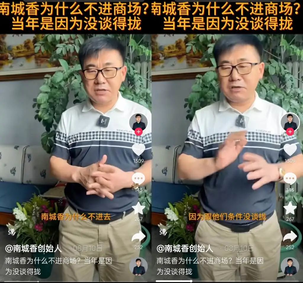 8月10日,南城香創(chuàng)始人汪國玉(@南城香創(chuàng)始人)發(fā)短視頻,說“南城香為什么不進(jìn)商場?當(dāng)年是因?yàn)闆]談得攏”。