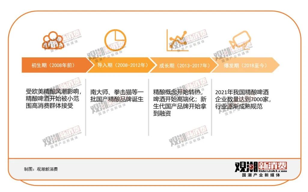 近年來,國產(chǎn)品牌迅速崛起,為精釀啤酒這一小眾品類發(fā)展加足了馬力。與此同時(shí),精釀也開始下沉到新渠道,如同工業(yè)啤酒從商區(qū)走向夜市、精釀啤酒也從酒吧走向了社區(qū)。