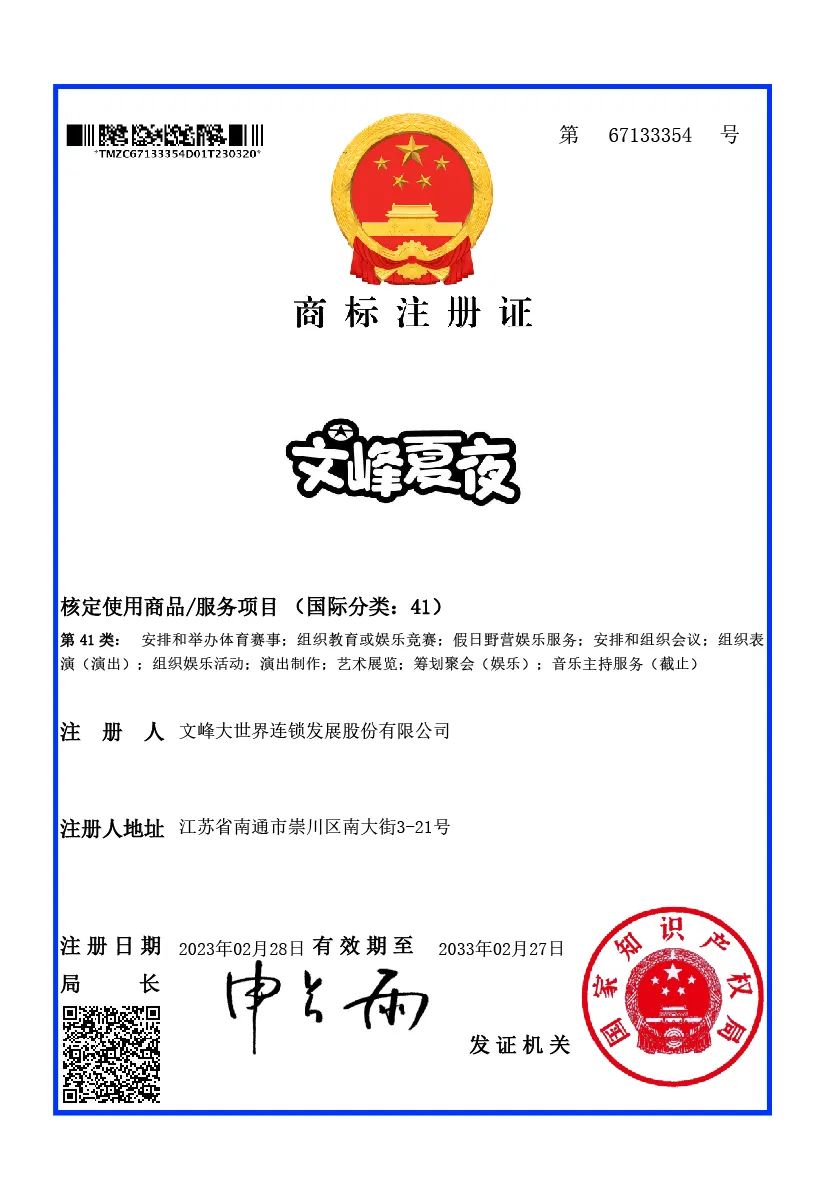 “文峰夏夜”是文峰股份自創(chuàng)的文化IP。1999年夏,文峰在南通商界開文化風尚之先河,首推“文峰夏夜”系列活動,范圍涵蓋文藝演出、競技比賽、夏夜營銷等多維度,極大豐富了市民群眾的夏夜休閑生活,贏得社會各界的普遍贊譽。歷經(jīng)24載時光暈染,不斷發(fā)揚光大、不斷傳承創(chuàng)新,已然成為城市商業(yè)文化的經(jīng)典傳承,是城市夏夜的美麗風景與共同期待。今年,“文峰夏夜”商標注冊及原創(chuàng)設計版權(quán)雙雙申請成功,以“點燃夏生活 繁榮夜經(jīng)濟”為品牌內(nèi)涵,時光見證,臻享美好。