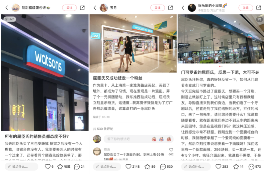 “不買東西,屈臣氏店員戾氣很重”“屈臣氏一瓶水也要注冊(cè)會(huì)員”等評(píng)論充斥在各大社交媒體。