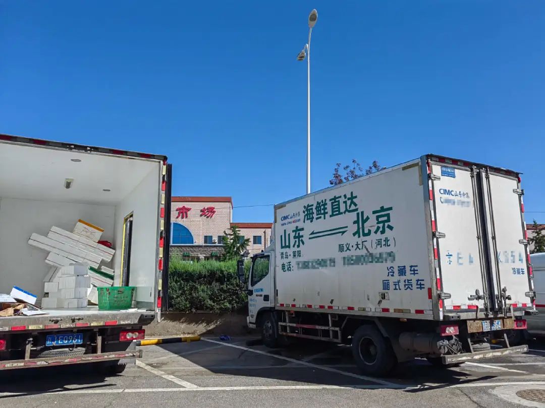 ◎市場(chǎng)較大,門口停留著拉貨的冷藏車