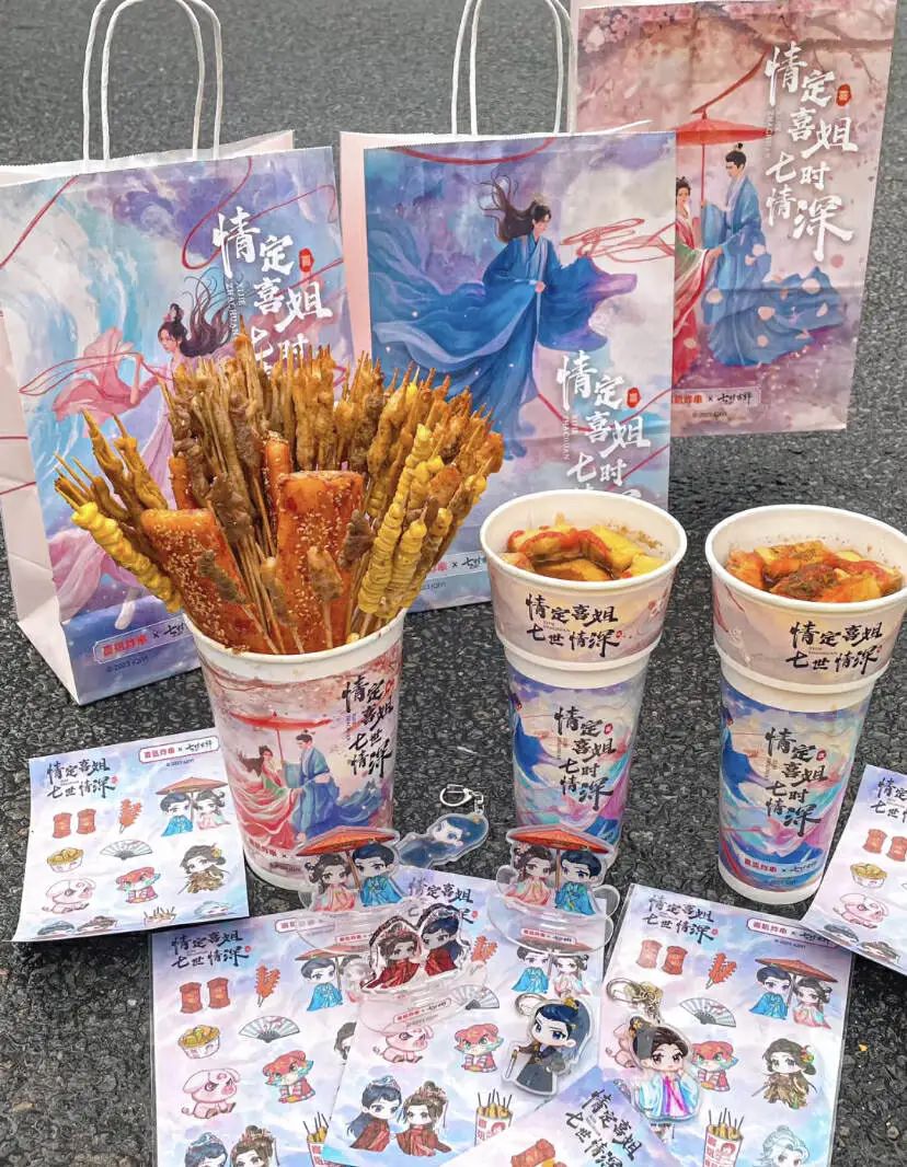 但如今的炸串,把一個平民小吃做大做強做高級,甚至成了網(wǎng)紅。在全國有2000多家店的喜姐炸串,最近和楊超越的古偶《七時吉祥》聯(lián)名刷屏小紅書,直接被博主叫做“炸串的天花板”。