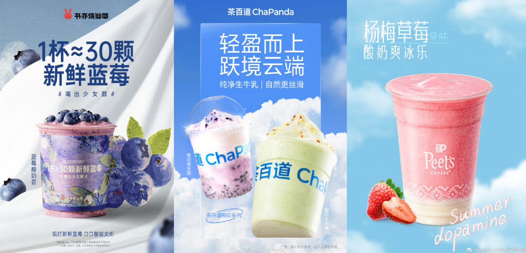 圖片來(lái)源:微博_@書亦燒仙草、茶百道Chapanda、PeetsCoffee皮爺咖啡