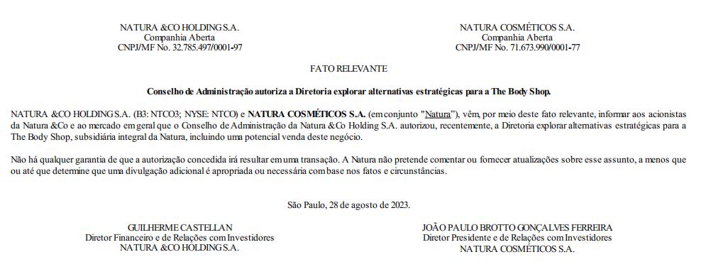 8月28日,Natura&Co在其證券備案文件中宣布,“已授權(quán)管理層探索美體小鋪的戰(zhàn)略替代方案”,并強(qiáng)調(diào)“其中可能包括出售該業(yè)務(wù)”。不過(guò),Natura&Co在一份文件中也表示,“不能保證這一過(guò)程會(huì)產(chǎn)生任何交易,除非事實(shí)和情況發(fā)生變化,需要進(jìn)行進(jìn)一步披露”。