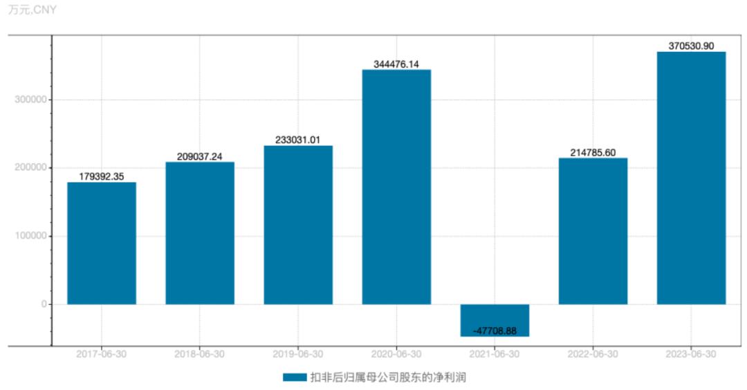 順豐控股2017-2023年中期扣非凈利表現(xiàn);圖源:Wind