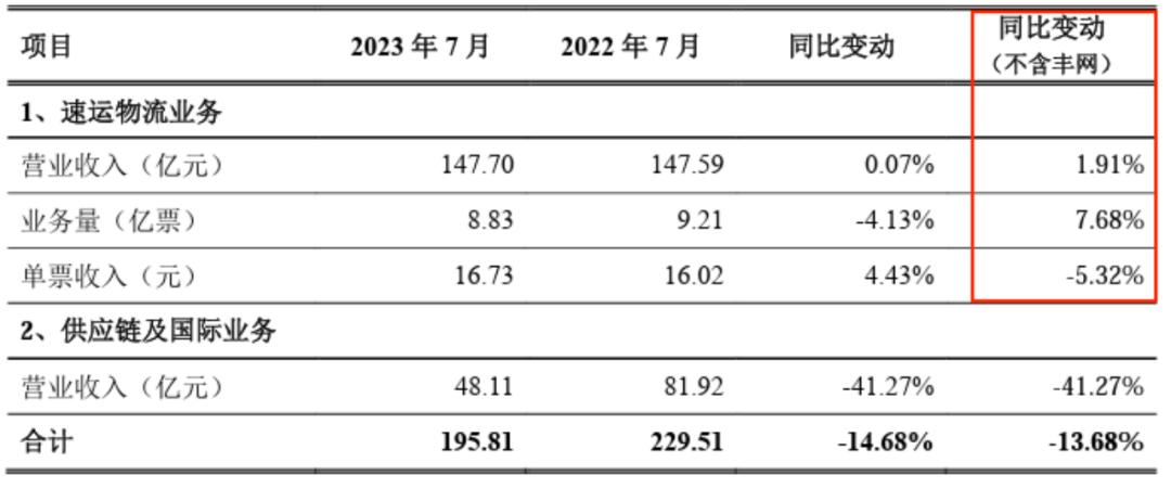 不過據(jù)此前順豐控股公布的經(jīng)營簡報,該板塊單月營業(yè)收入連續(xù)出現(xiàn)同比下滑,6月同比下滑51.66%,7月同比下滑41.27%。