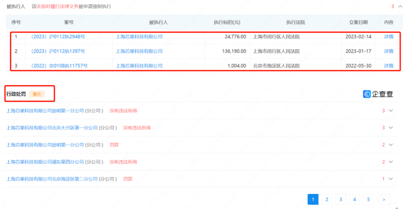 企查查顯示,好特賣主體公司上海芯果科技有限公司僅行政處罰一項(xiàng)就高達(dá)28條,此外還有3次被強(qiáng)制執(zhí)行。
